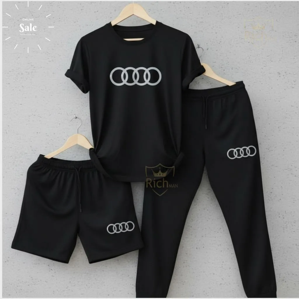 Men Audi Logo 3-Piece Summer Tracksuit Black