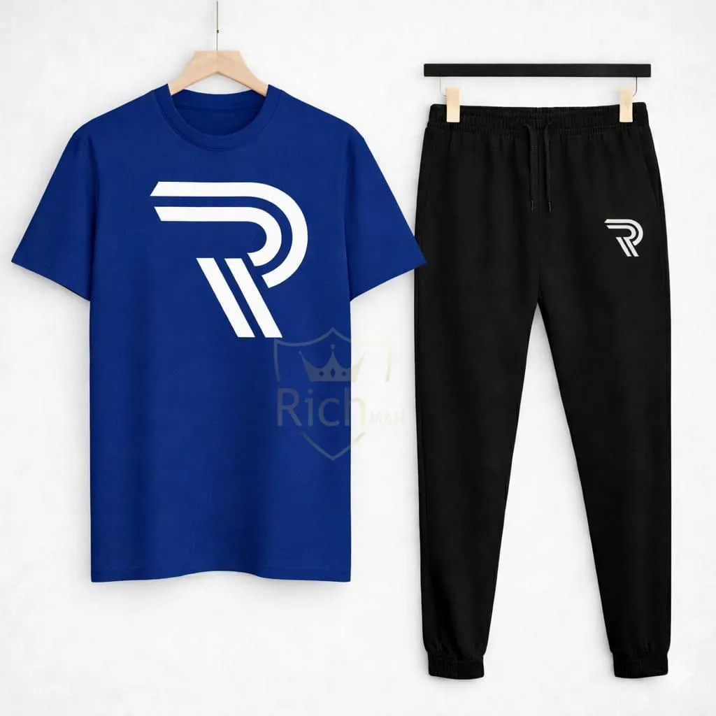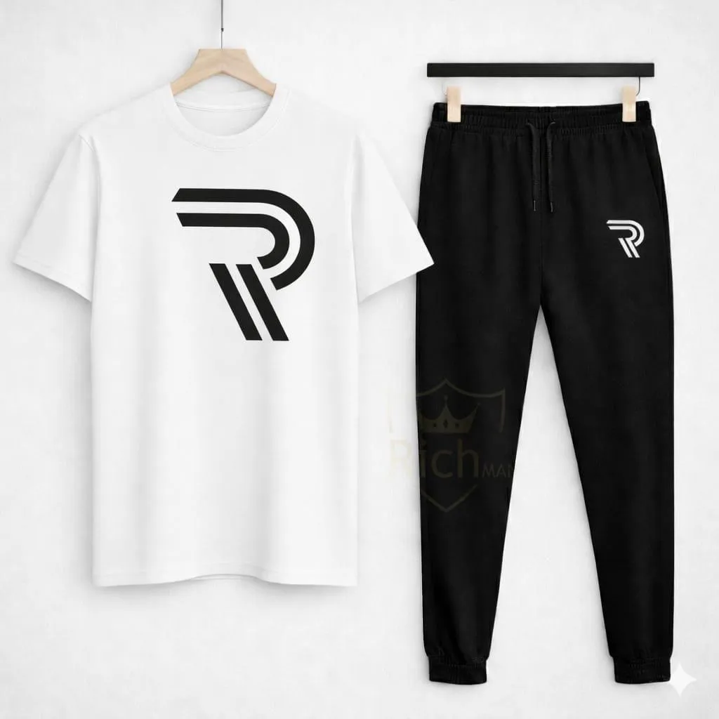 Men Black R-Logo Cotton Track Suit Set Slim Fit