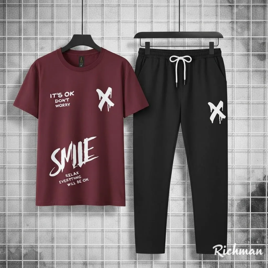 Men Maroon Royal Printed Track suit Cotton Summer Set